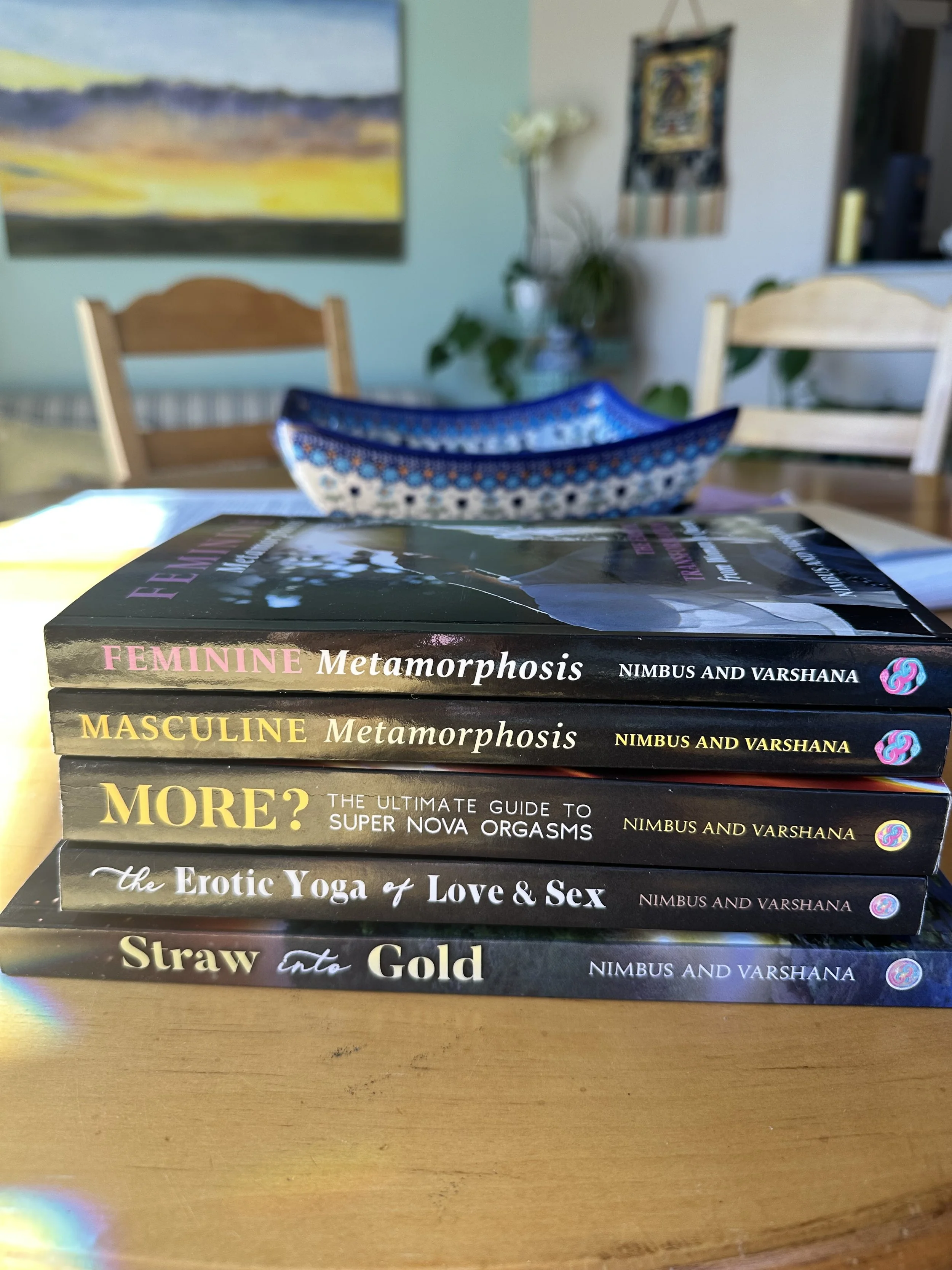 Their first six books comprise the Q Merging Sacred Erotica Series ~ Straw into Gold…A Story of Mystical Erotic Love; The Erotic Yoga of Love and Sex…A Choice That Changes the World; More?…The Ultimate Guide to Super Nova Orgasms; Masculine Metamorphosis…A High Striker’s Guide to Women, Love and Sex; Feminine Metamorphosis…The Erotic Transformation from Woman to Queen; and Attract your Lover from the Stars…Hidden Secrets to Find the Matching Mate of your Soul.
